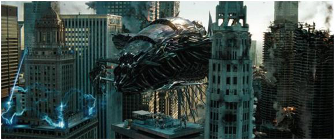 I just took our Chicago office to see the greatest movie in the history of the world. And by that I mean, of course, Transformers 3: Dark of the Moon. Dark side? Nope, just Dark, no Side. Anyway, the last 45 minutes of the movie show our office building at 401 N. Michigan Ave. and our entire north-of-the-river Michigan Avenue neighborhood being attacked, crushed, killed and destroyed by giant killer robots, giant evil robotic dirigibles, giant fanged killer worm-snake robots, giant multi-colored robot lasers, and giant robotic aerial drone things.